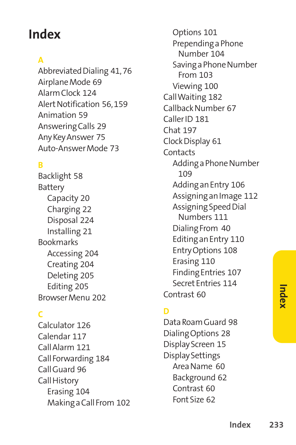 Index Sprint Nextel Sprint Pcs Visio Scp 7000 User Manual Page 249 254 Original Mode